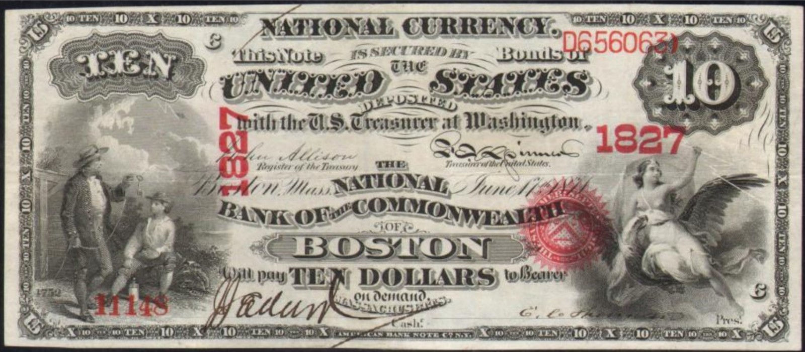 Original Series $10 Boston, MA Ch1827 J.J. Eddy, Cashier and E.C. Sherman, President