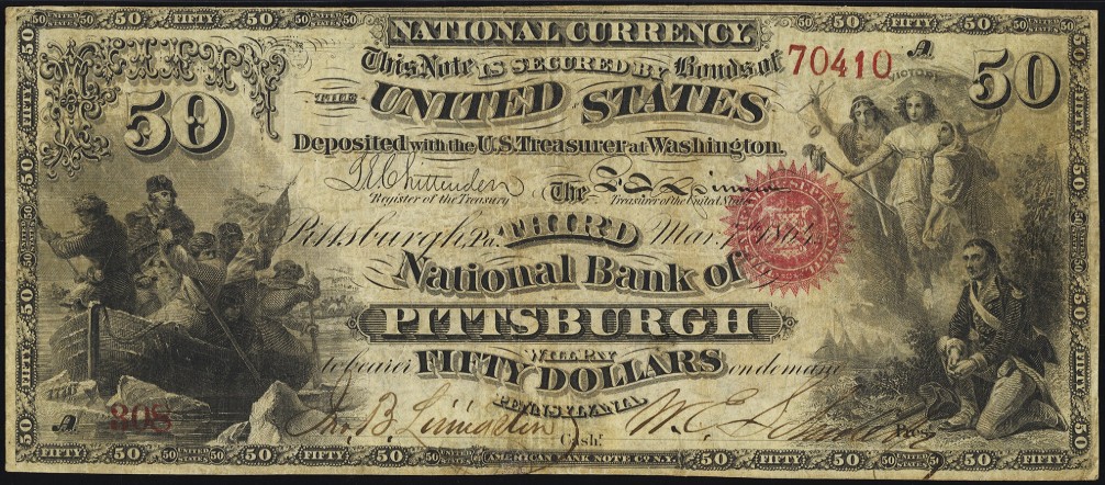 Original Series $50 bank note Pittsburgh, PA Ch291 John B. Livingston, Cashier and William E. Schmertz, President