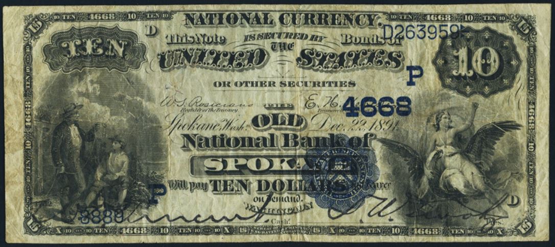 1882 Date Back $10 Spokane, WA Ch4668 W.D. Vincent, Cashier and D.W. Twohy, President Abnormal Border Variety